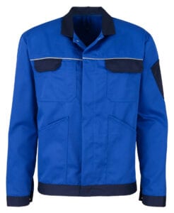 Die Bundjacke ist in den Größen 44 bis 64 und 90 bis 114 erhältlich und wird aus einer Mischung aus 65% Polyester und 35% Baumwolle (245 g/m²) gefertigt. Das robuste Gewebe ist für die Industriewäsche geeignet und steht für Langlebigkeit.