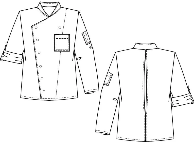 Das Design zeichnet sich durch raffinierte Details aus, die sowohl Funktion als auch Stil berücksichtigen. Ein klassischer Stehkragen und der Druckknopfverschluss sorgen für einen klaren, professionellen Look, während die Krempelärmel und die Rückenfalte für zusätzlichen Tragekomfort und Bewegungsfreiheit sorgen. Mit einer Brusttasche und einer Ärmeltasche haben Sie stets genug Stauraum für Ihre wichtigsten Küchenutensilien zur Hand.