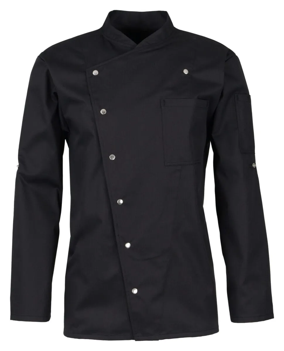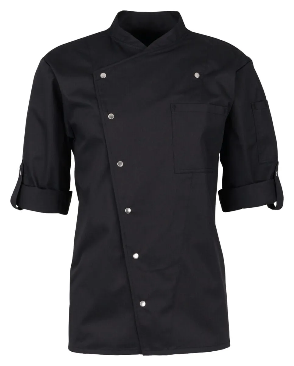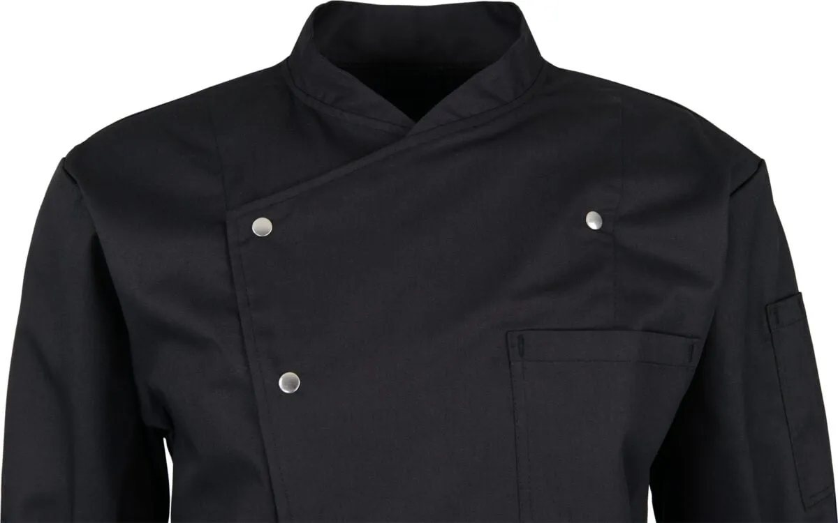 Diese Jacke ist in einer eleganten schwarzen Farbe erhältlich, die in jeder Küchenumgebung gut aussieht und den meisten Uniformstandards entspricht. Und das Beste daran: sie ist industriewäschegeeignet, was die Reinigung zum Kinderspiel macht.