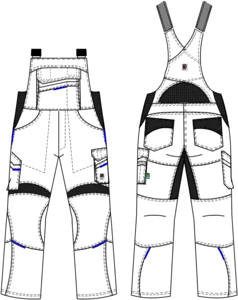 - schwarze Stretcheinsätze zur besseren Bewegungsfreiheit im Rücken, zwischen den Beinen, oberhalb vom Kniebereich und in der Seite