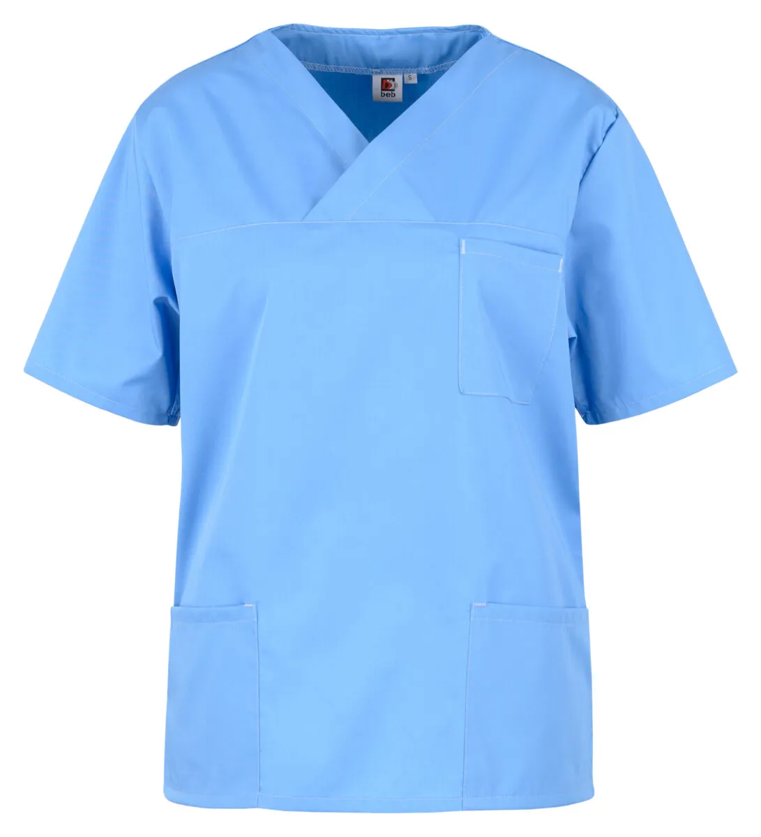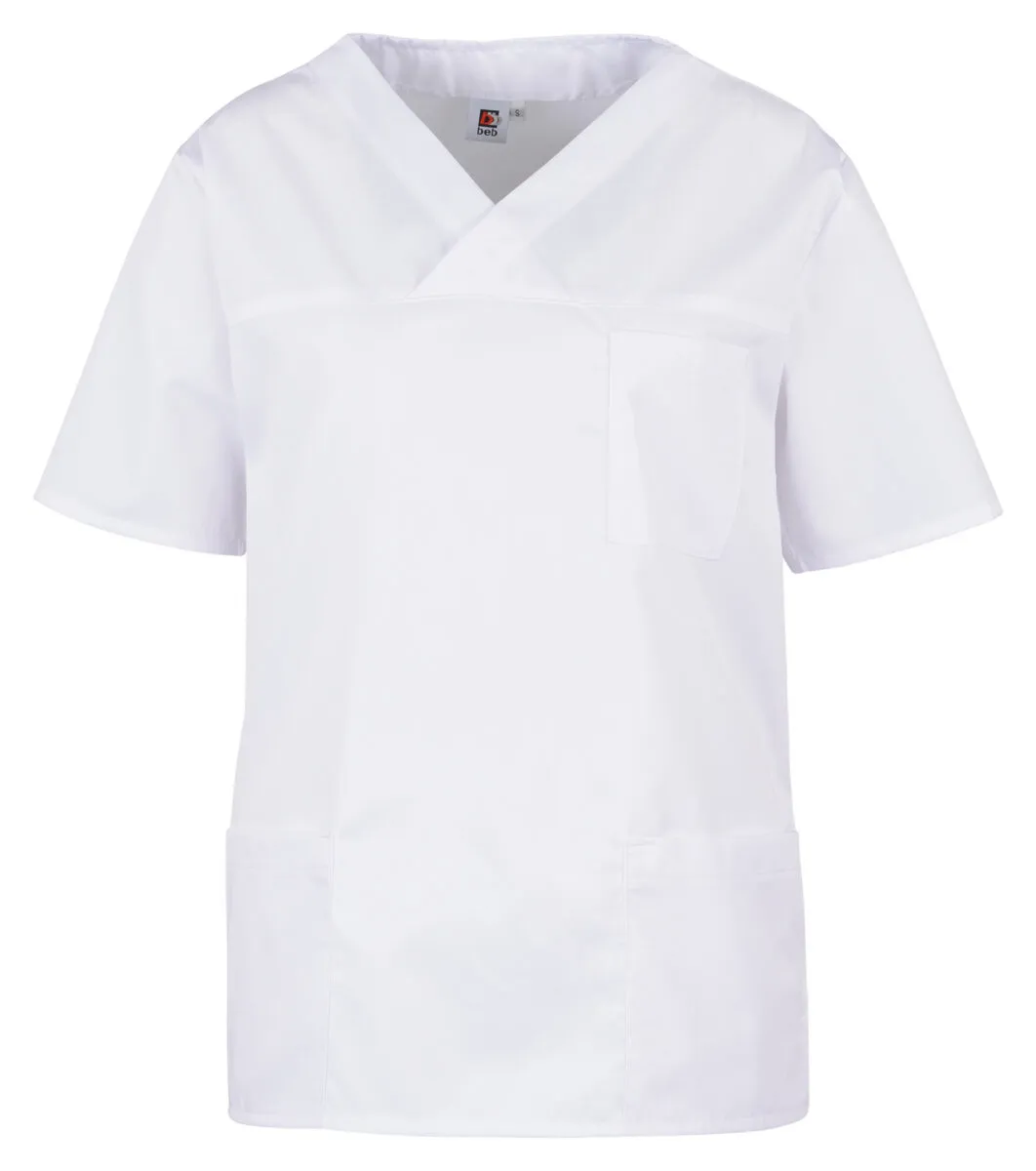 Der Schlupfkasack hat eine legere Passform, die sowohl Männern als auch Frauen schmeichelt, und verfügt über einen spitzen, überschnittenen V-Ausschnitt, der einen modernen und professionellen Look bietet. Darüber hinaus bietet er genügend Stauraum mit zwei aufgesetzten Seitentaschen und einer Brusttasche, in denen Sie Ihre wichtigen Arbeitsutensilien immer griffbereit haben.