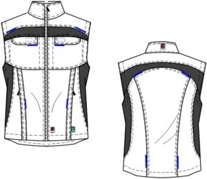 - schwarze Stretcheinsätze zur besseren Bewegungsfreiheit im oberen Rücken-, Brustbereich und Seite
